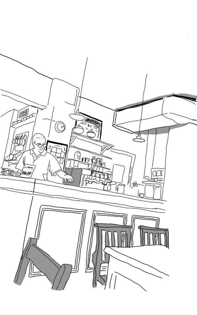 We sat at a table and waited. I fiddled with my phone. Julie read the menu. Someone nearby pressed a fork into a cake. The cake’s soft crust gave way easily. It looked moist and sweet. My stomach almost dragged me over to it.
