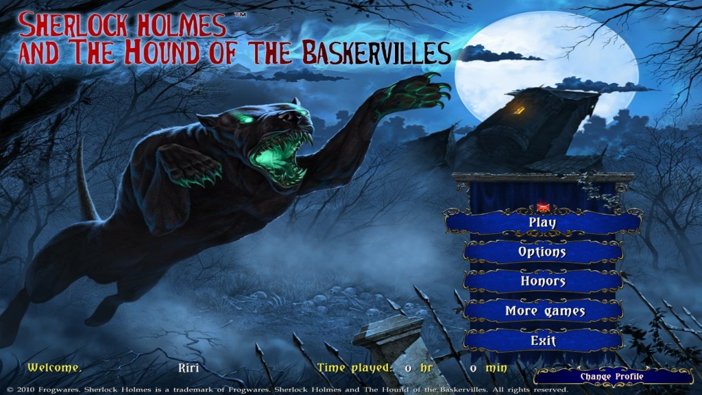 The actual game is titled Sherlock Holmes and the Hound of the Baskervilles – which is awkward because I’m pretty sure there is a book titled exactly the same thing.